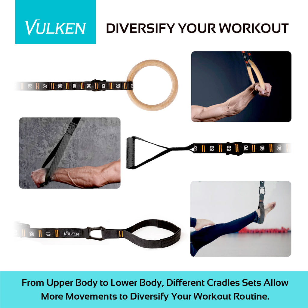 Multiple handles included. You could use 1 Vulken Gym Rings to perform diversified workouts.