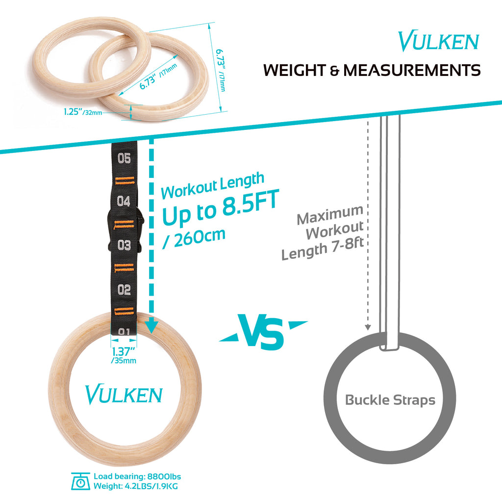 Other reasons include that VULKEN Gymnastics Rings Set is affordable, lightweight (4.4 lbs), easier to set up than the other brands,